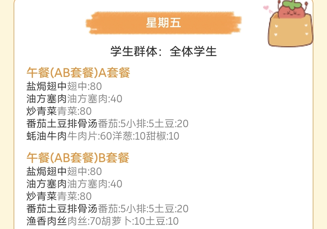初中部菜单公示(2026.1.5-2026.1.9)