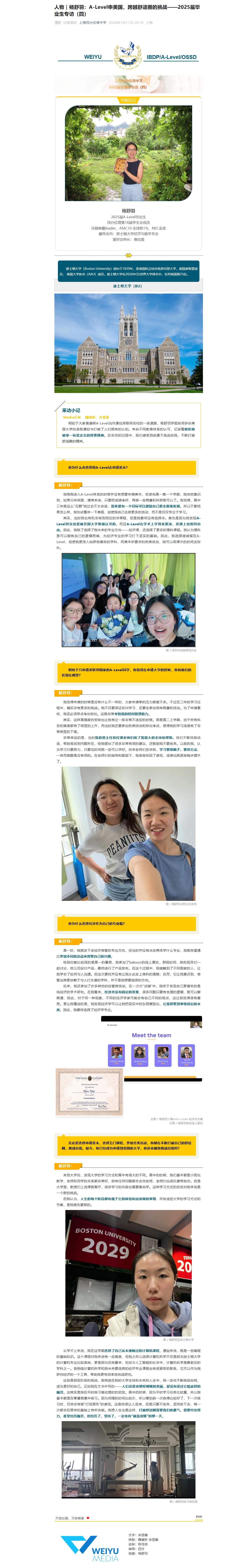 人物|杨舒羽:A-Level申美国,跨越舒适圈的挑战——2025届毕业生专访(四)