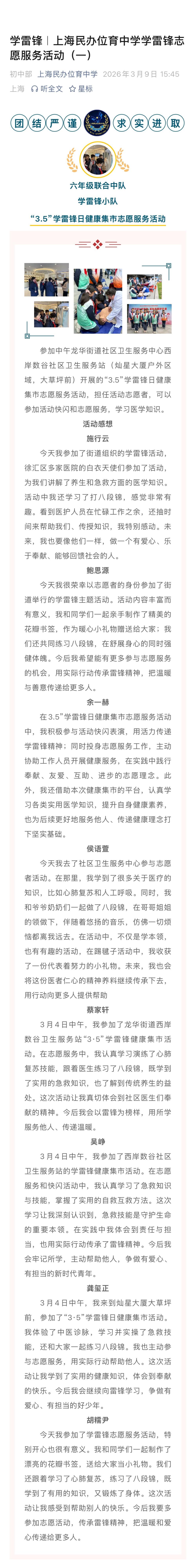 学雷锋|上海民办位育中学学雷锋志愿服务活动(一)