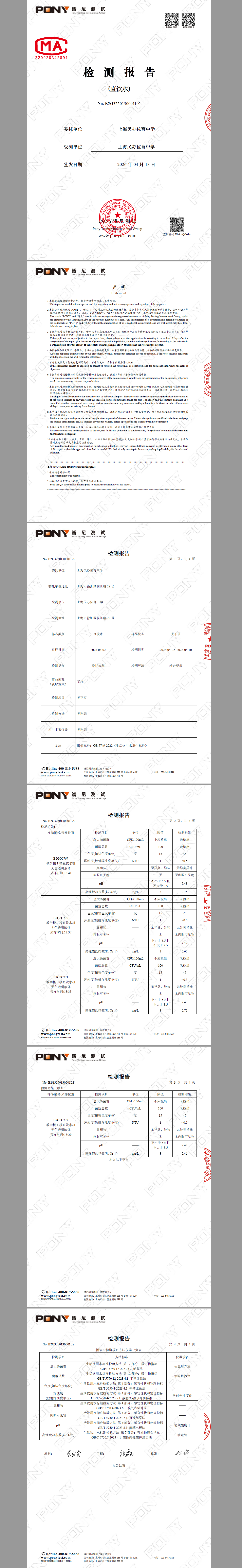 2026年4月初中部直饮水检测报告(4月月检)