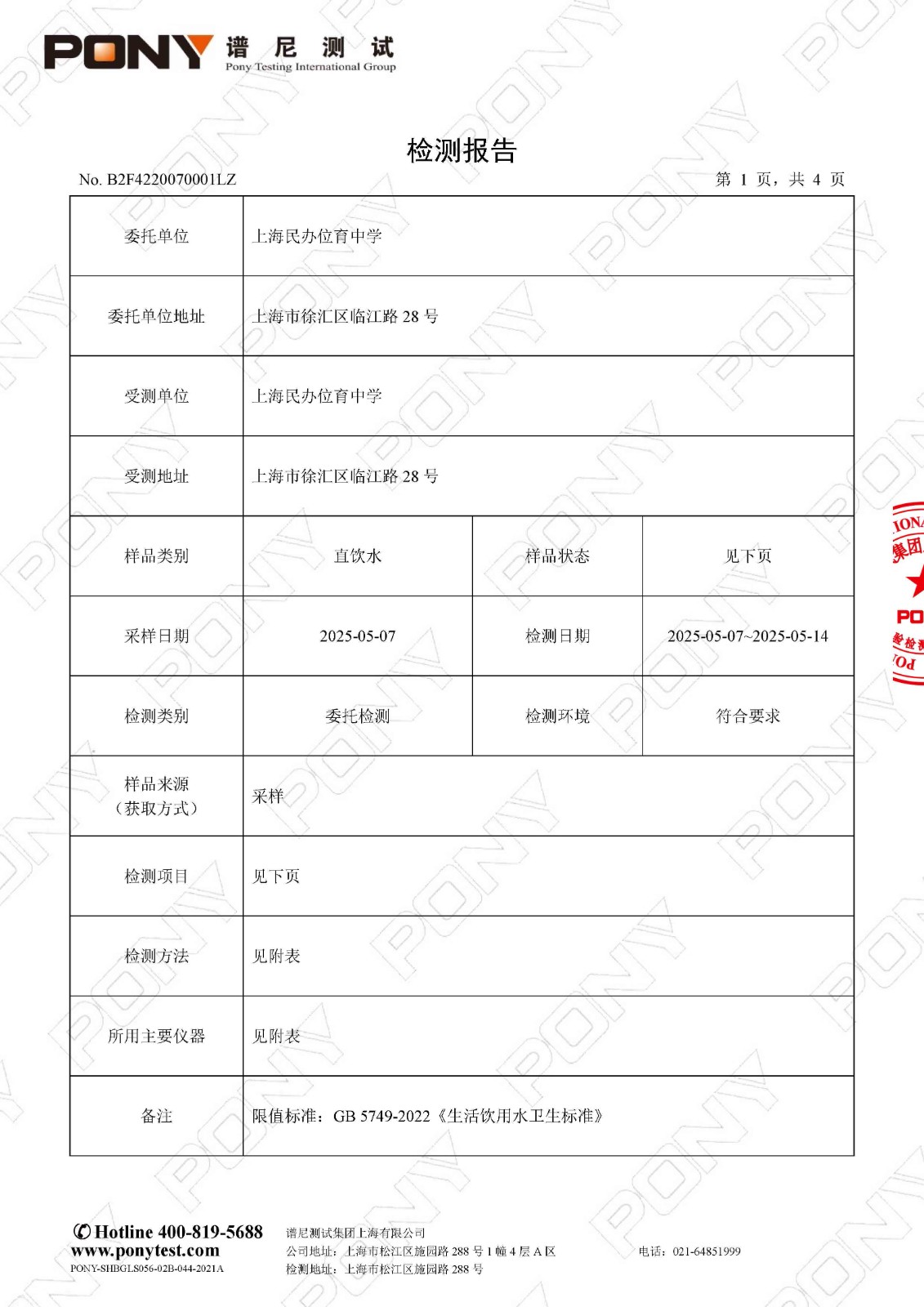 2025年5月初中部直饮水检测报告(5.14)(月检)