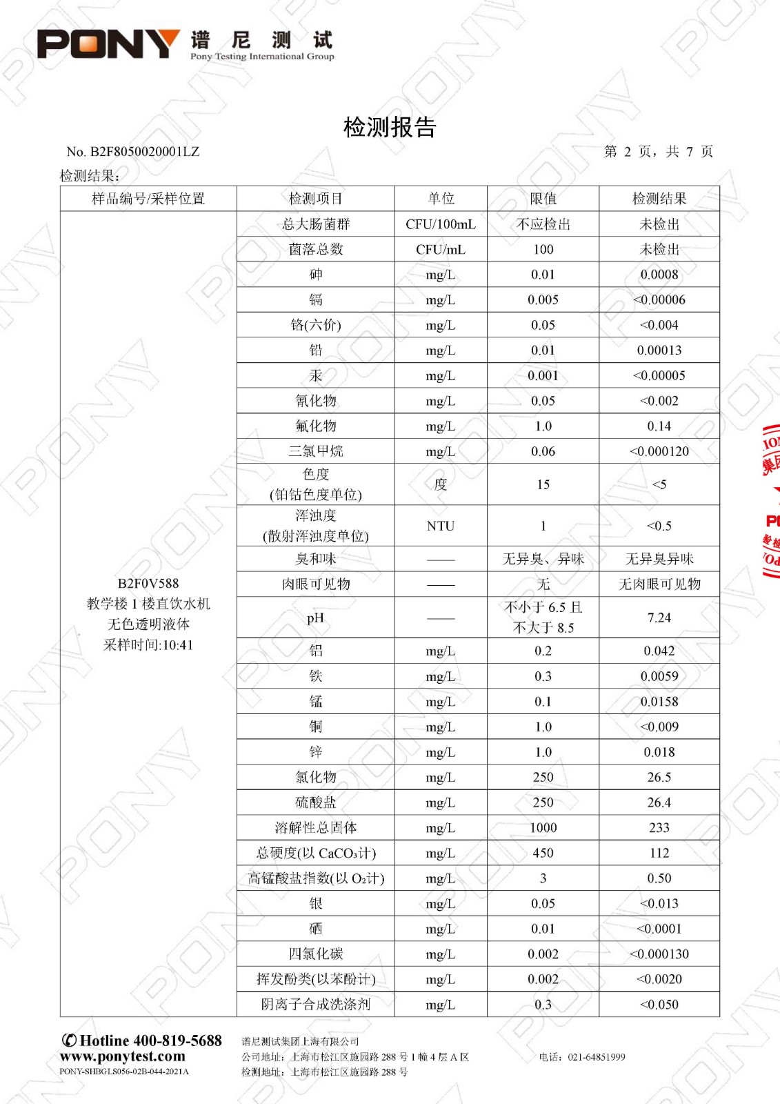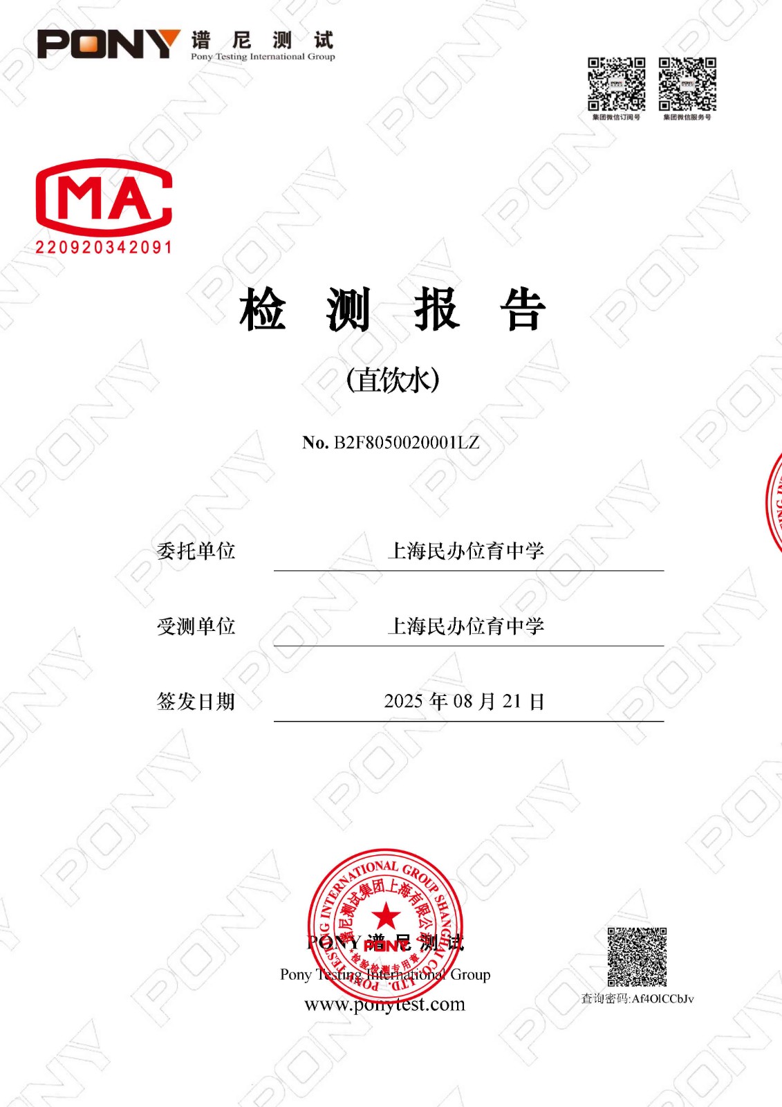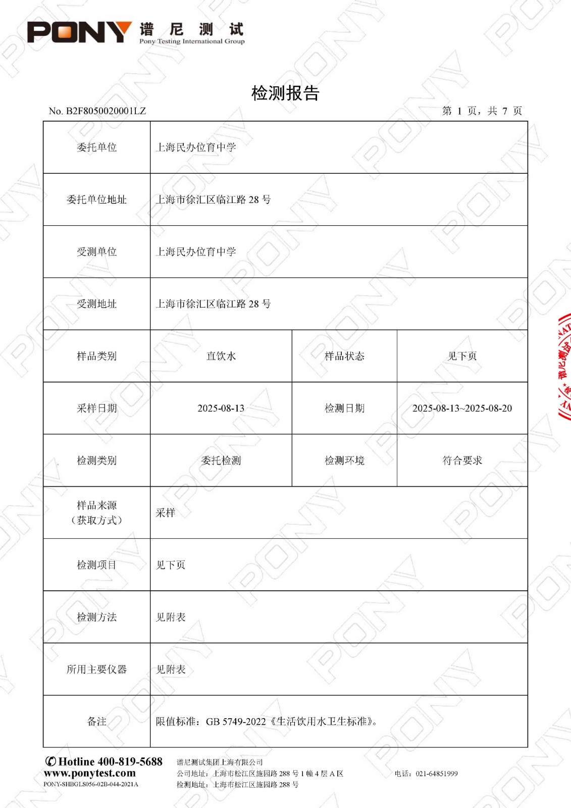 2025年8月初中部直饮水检测报告(8.21)(学期检)