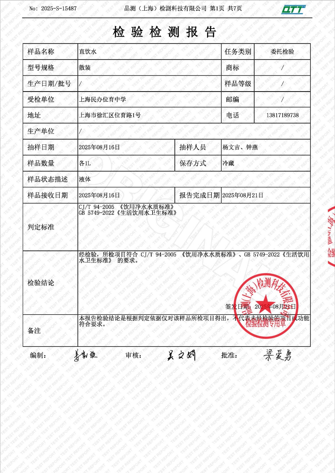 2025年8月国际部直饮水检测报告(8.16)(学期检)