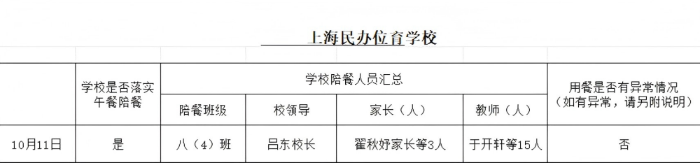 上海民办位育中学(初中部)2025年10月11日午餐陪餐公示