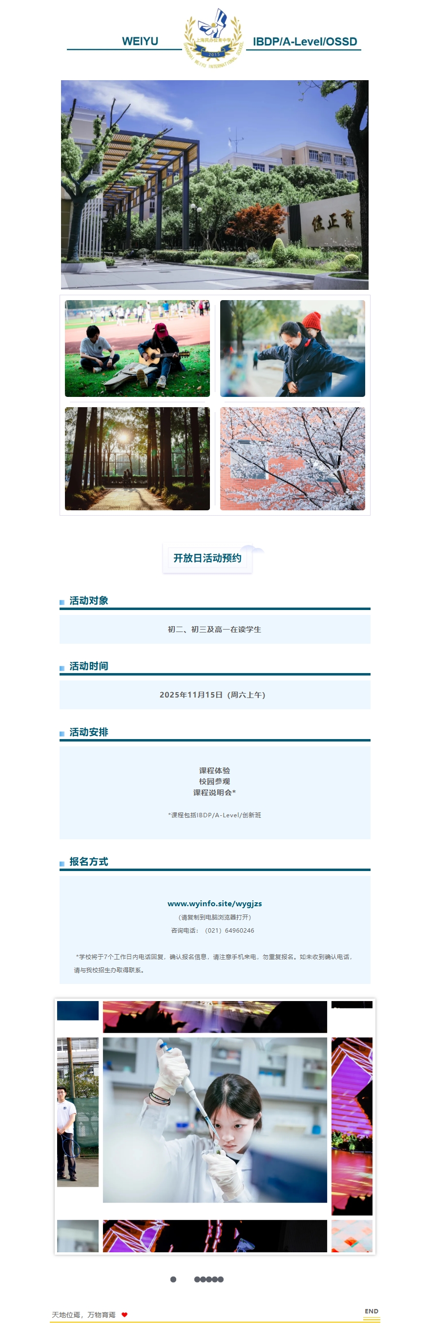 开放日 | 民办位育国际课程11月15日(第二批次)校园体验等你来!
