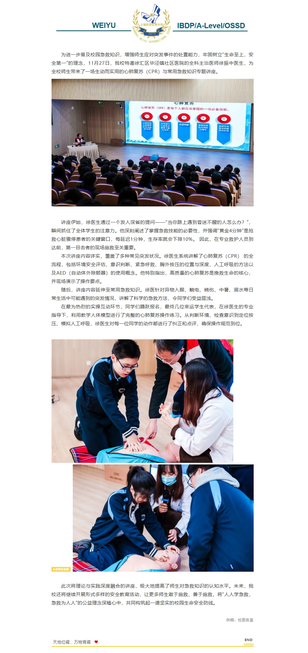 校园 | 守护生命,“救”在身边——民办位育心肺复苏与常用急救知识讲座